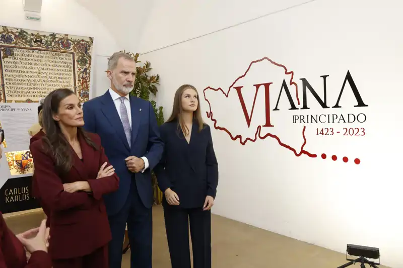 En Viana, localidad que da nombre al nuevo cargo de Princesa de Viana de Leonor, su hoja de ruta traía consigo la visita del Ayuntamiento, la exposición con motivo del sexto centenario del título Príncipe de Viana y el homenaje a los Reyes de Navarra y al Reino de Navarra.