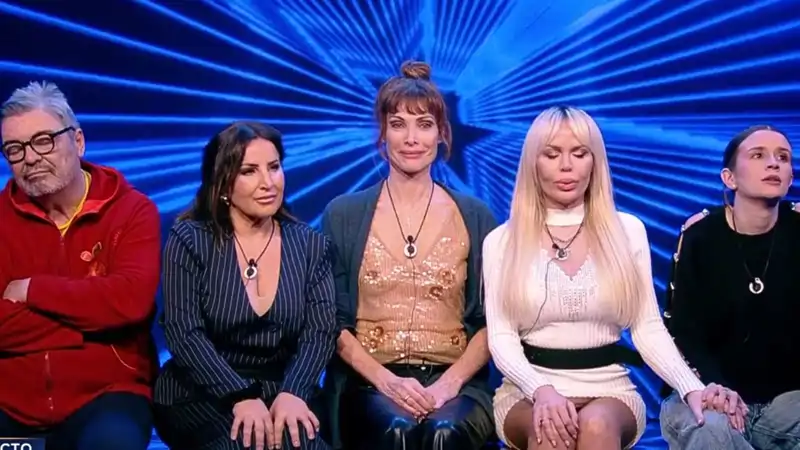 Antonio Canales, Raquel Salazar, Cristina Piaget, Sonia Madoc y Sandra Barrios de GH Dúo justo antes de escuchar quién se salva de la nominación.