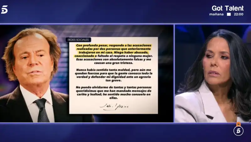 Vaitiare escucha las palabras del comunicado de Julio Iglesias donde especifica la posición que tomará tras los últimos días.